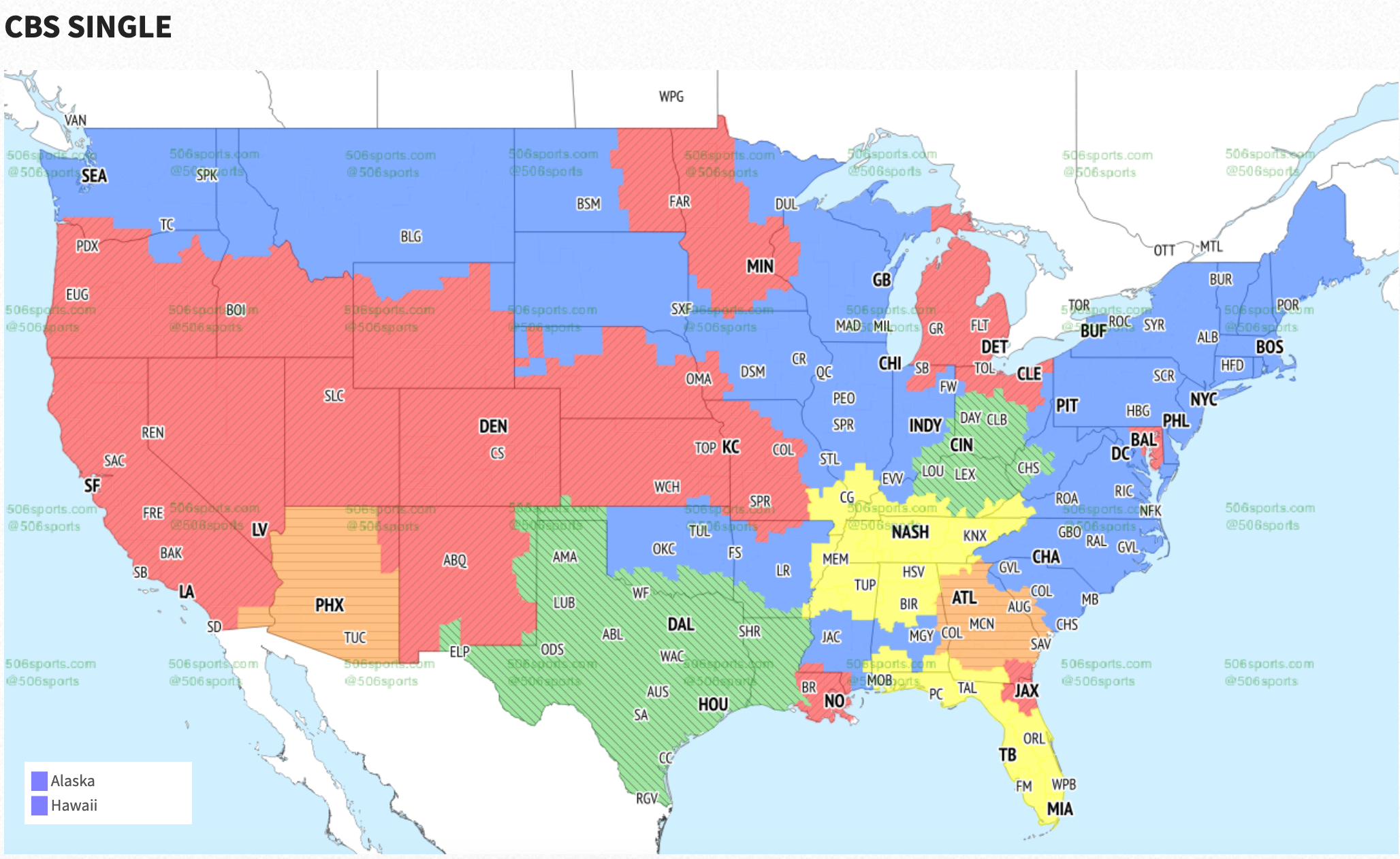 Will you be able to watch the game on TV? If you live in the green areas on the map below, you’ll get this game on your local CBS channel, according to 506sports.com: