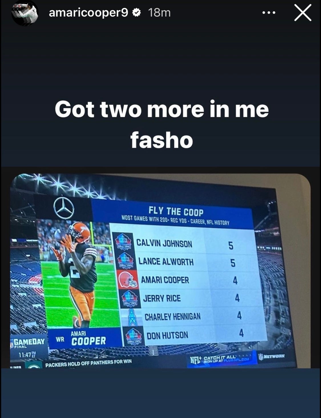 A day after he went off for 11 catches and 265 receiving yards with two touchdowns, Cooper shared that he can break an NFL record. The Pro Bowl-level wide receiver took to Instagram to share.