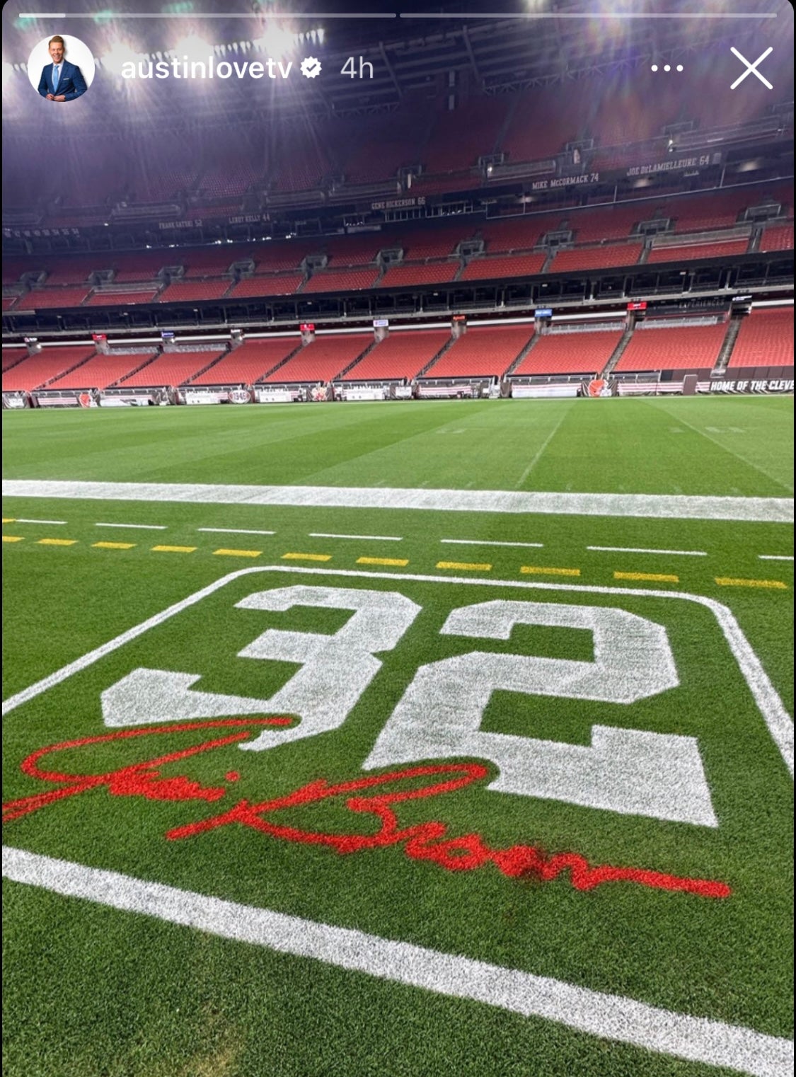 In a photo shared to Instagram by Austin Love of WKYC-NBC Cleveland, the Browns have placed the No. 32 on the field, along with the autograph of Brown. The logo appears on the sideline and will surely be there throughout the season.