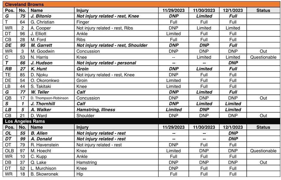 Browns Injury Report: A boost of good news for Browns on Friday before Rams matchup