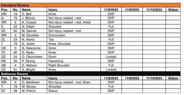 Week 10 is not off to a good start for the Cleveland Browns when it comes to the injury report. It is not pretty.