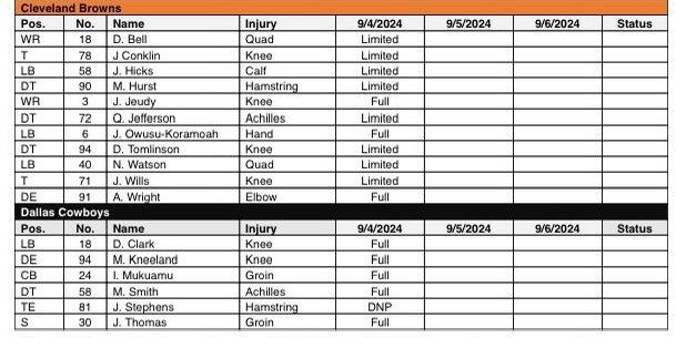 Browns start off Week 1 with the news they needed to hear that can help them beat the Cowboys