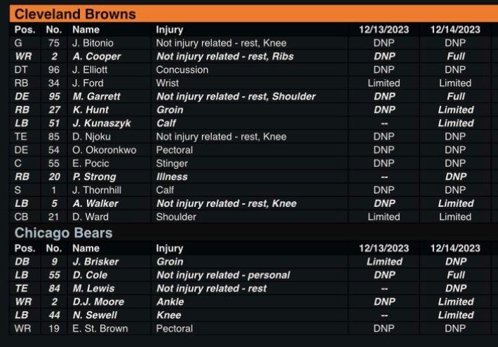 Injuries and the Cleveland Browns have been a match made for each other during the 2023 season. They have some real injury concerns ahead of hosting the Chicago Bears in Week 15 and Thursday’s practice proved just that. On Thursday, Cleveland did not have C Ethan Pocic, LG Joel Bitonio, DT Jordan Elliott, DE Ogbo […]