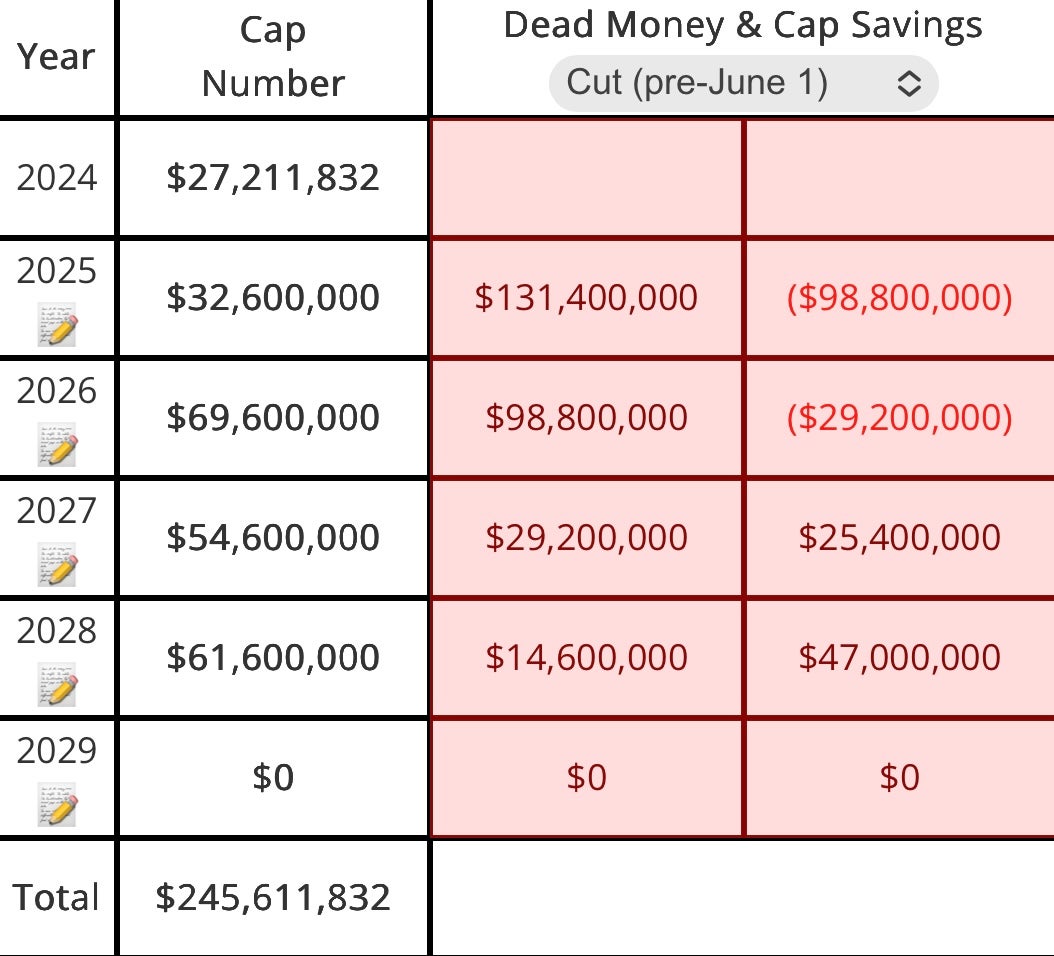 The reason it doesn't have any money on it right now is that it's likely to be used for a restructuring of Goff's contract. 2026 is the absolute best year to do that.