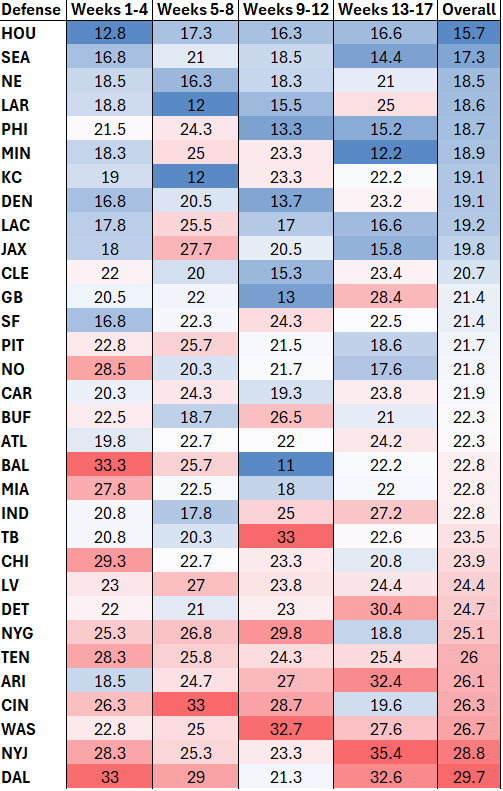 You can actually see it happen on this graph. Terrion Arnold got hurt, Brian Branch got hurt, the Kerby Joseph injury changed things, and the D.J. Reed injury changed things. Alim McNeill didn’t return to his usual self, and Marcus Davenport got hurt and then got hurt again. The whole secondary went down, and the Lions could not survive.