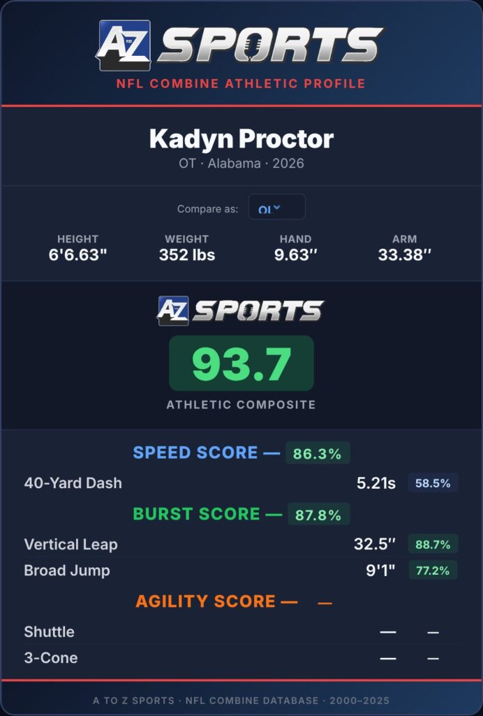 Proctor was Pro Football Focus’ 9th highest grade offensive lineman in the country with an 85.4 grade in 2025. He allowed 21 pressures and two sacks in the pass block game. In the run game, he put forth a career-best 81.1 run blocking grade. That’s 11th among all tackles who played a minimum of 300 run snaps. It’s also the highest among tackles expected to go in the first round.