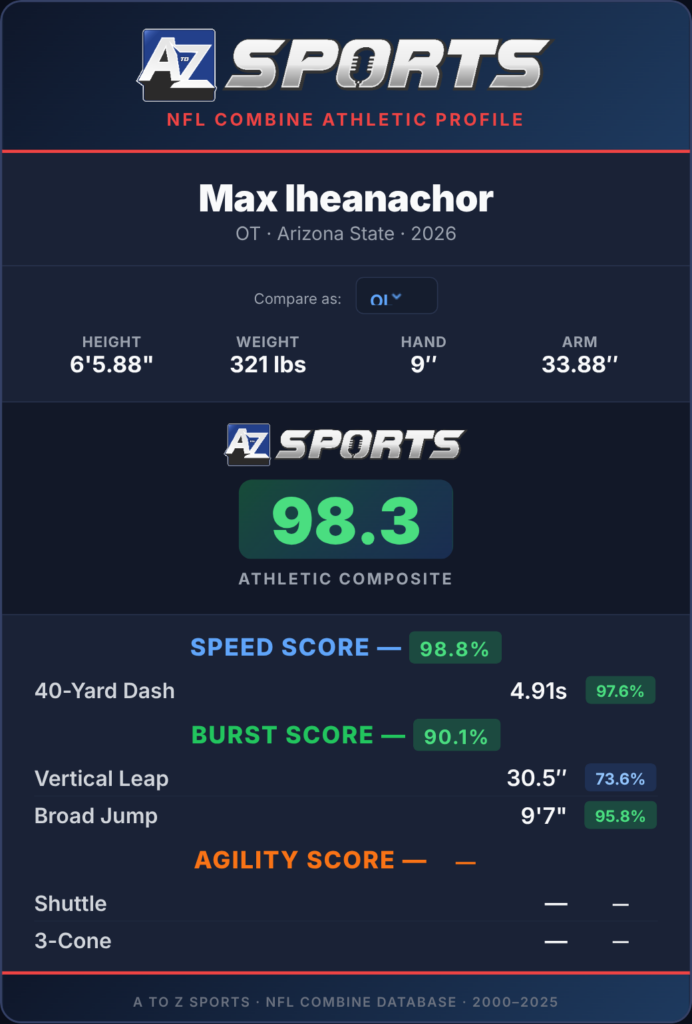 Let’s start here. If you’re looking for an athletic tackle for the Lions, Iheanachor is the most athletic option the Lions could go with.