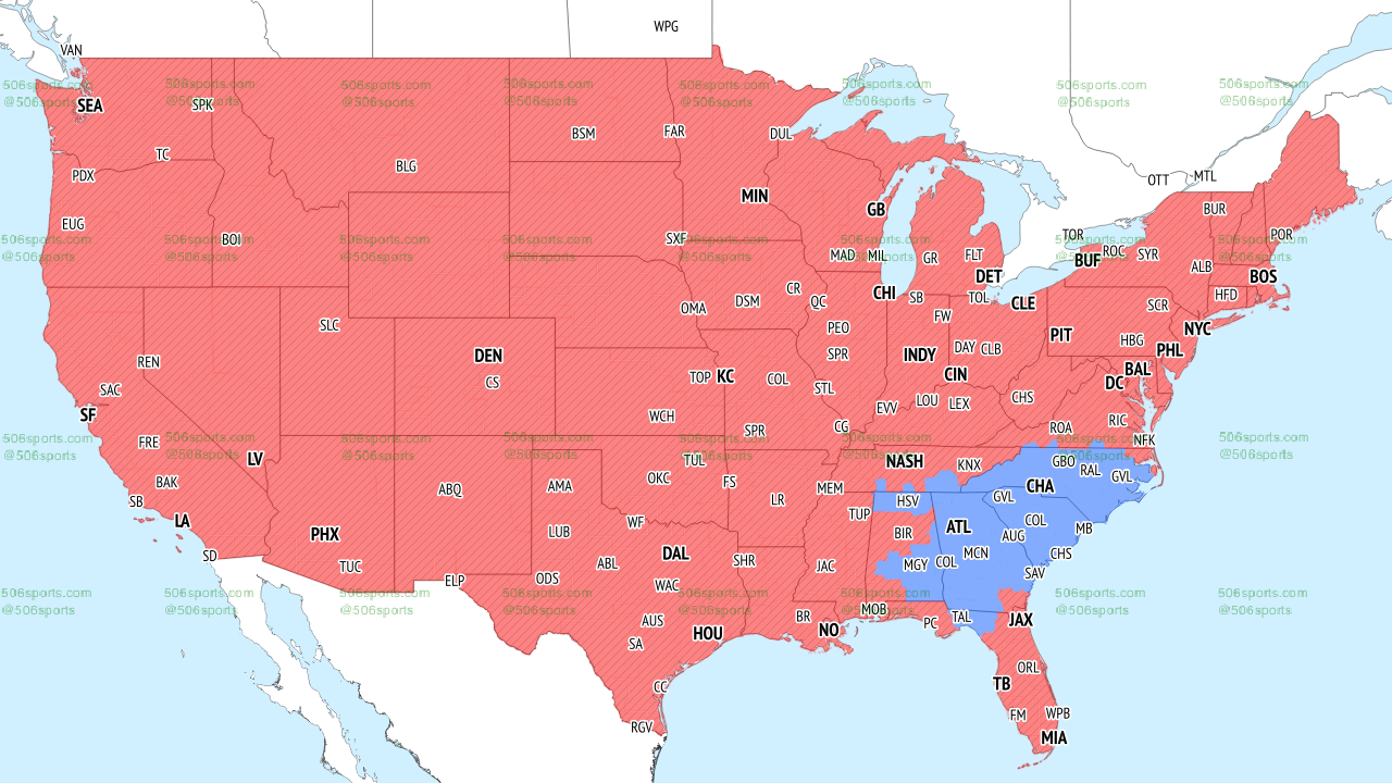 If you're out of Michigan, don't worry, this game is showing pretty much everywhere in the country except Georgia and North Carolina. the Lions game is represented in red.