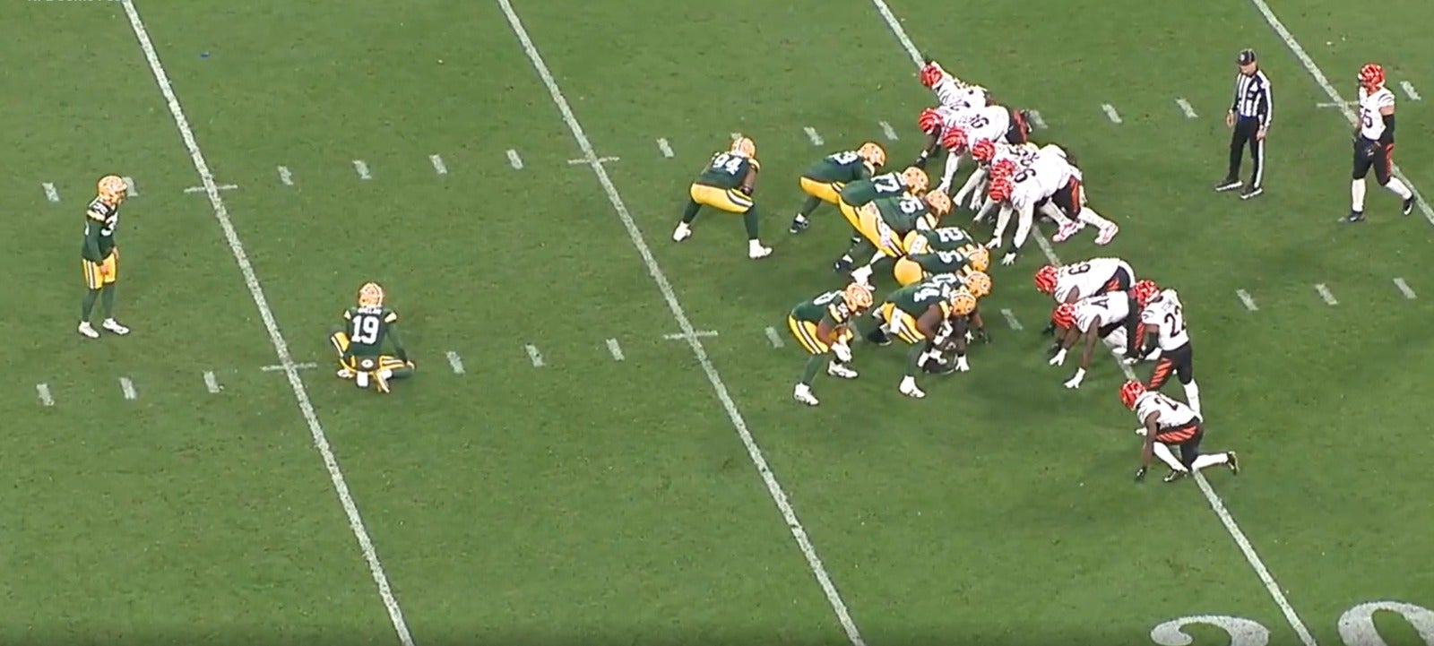 And the Packers actually did it. For both field goal attempts, Green Bay had its five starting offensive linemen on the field, plus the top two backups. The protection unit had Karl Brooks, Rasheed Walker, Jordan Morgan, Sean Rhyan, Matthew Orzech, Aaron Banks, Darian Kinnard, Elgton Jenkins, and Zach Tom.