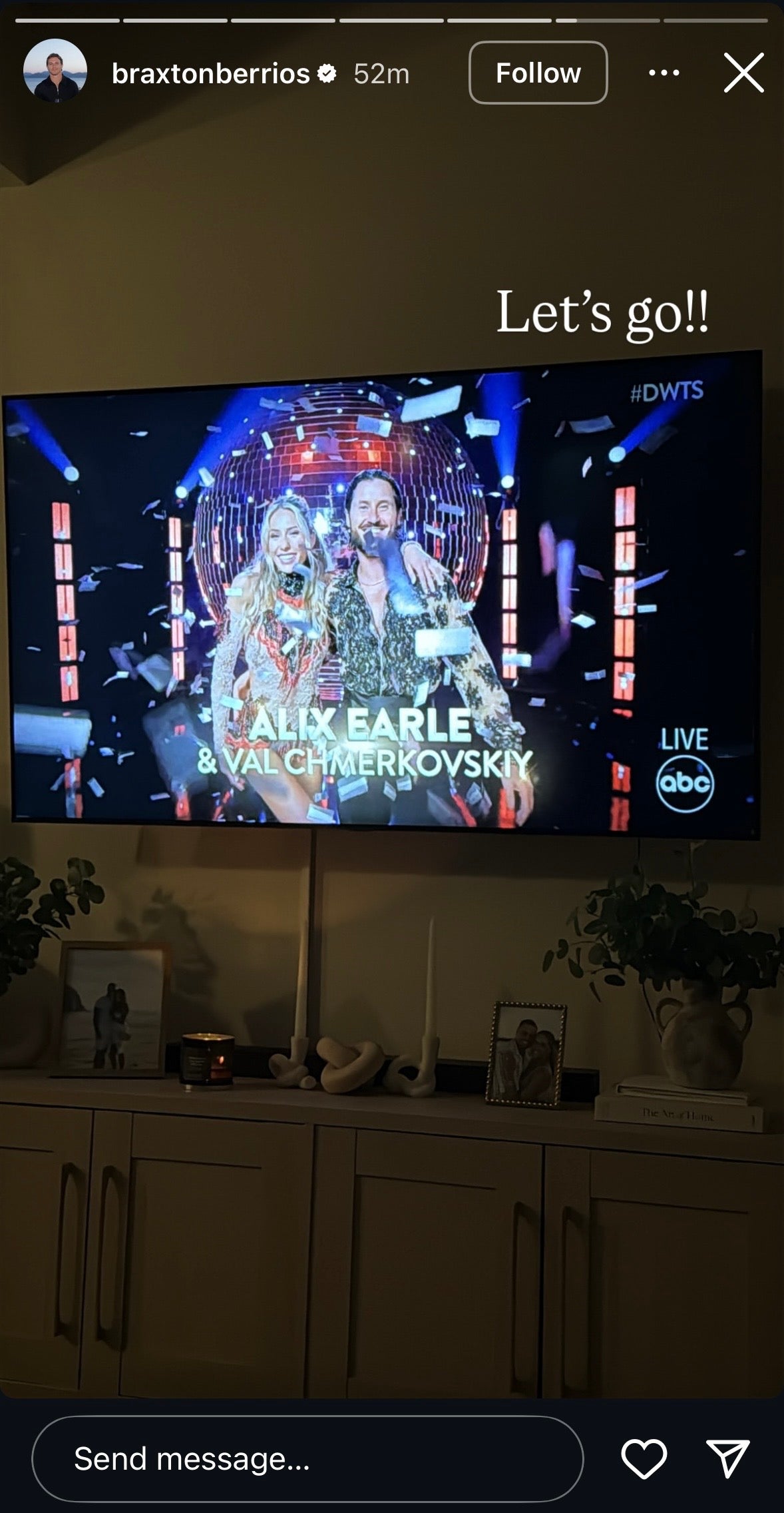 Braxton Berrios was tuned in on Tuesday night alongside millions of others to watch the “Dancing with the Stars” 20th Anniversary celebration. And of course, he was cheering on his girlfriend, Alix Earle.
