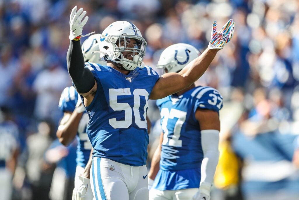 While with the Colts, he appeared in 57 games and started in 48 of them, recording 343 total tackles, 3.5 sacks, and 19 tackles for loss. The best year of his career came in 2019, when he led the team with 124 total tackles and had his career high of 2.5 sacks.