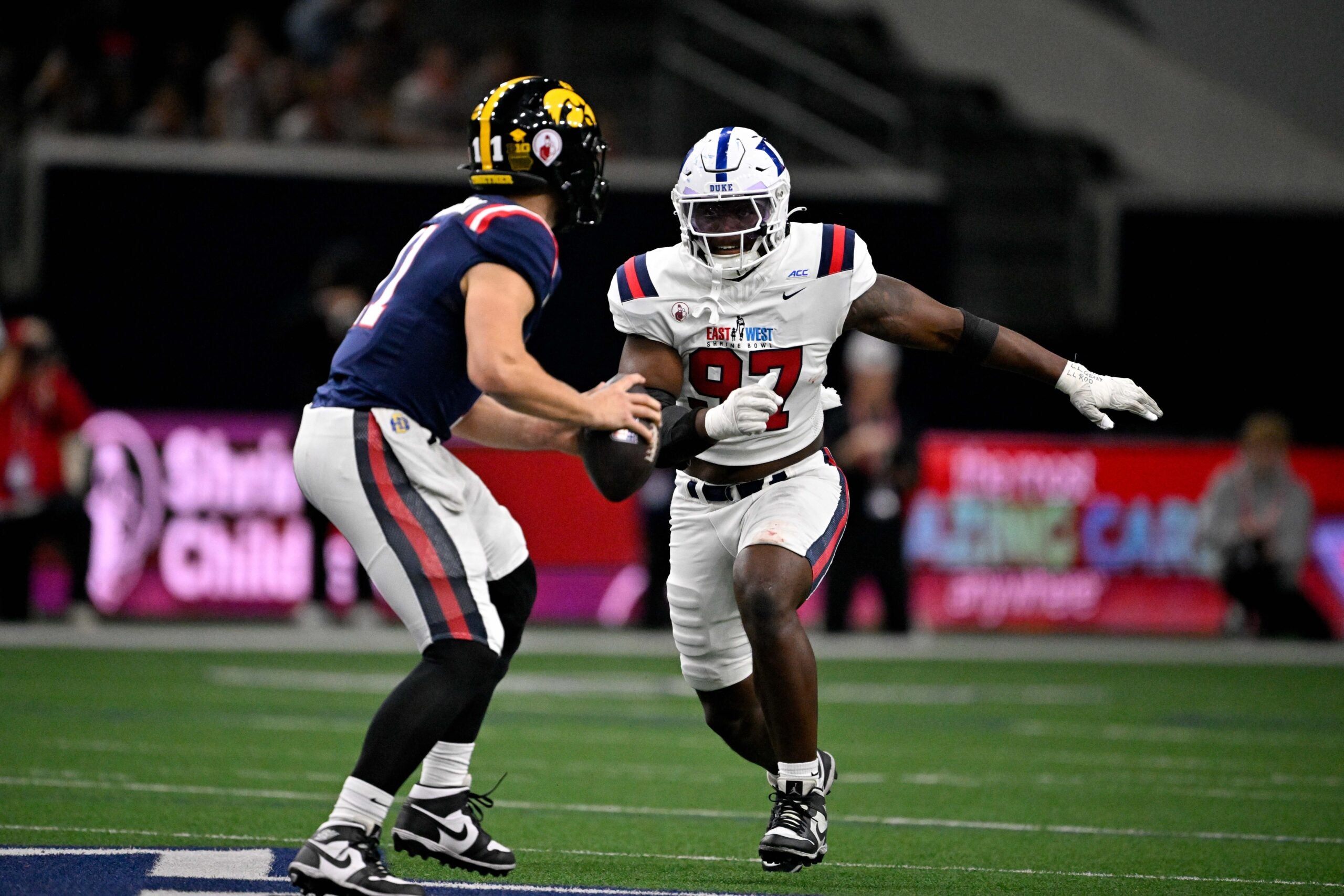 The Duke product has good size — 6-3, 254 pounds — with mediocre arm length — 31 7/8 inches. He is a solid run defender on the edge, earning an 80.4 Pro Football Focus run defense grade last year. His sack numbers dropped from 7.5 to two from 2024 to 2025, but he still generated 46 QB pressures in 358 pass rushing snaps.