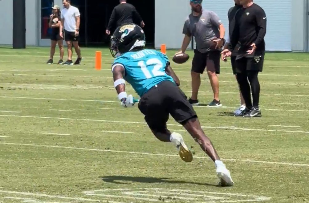 Jaguars rookie Travis Hunter gives fans a glimpse of his connection with QB Trevor Lawrence in early practices at OTAs