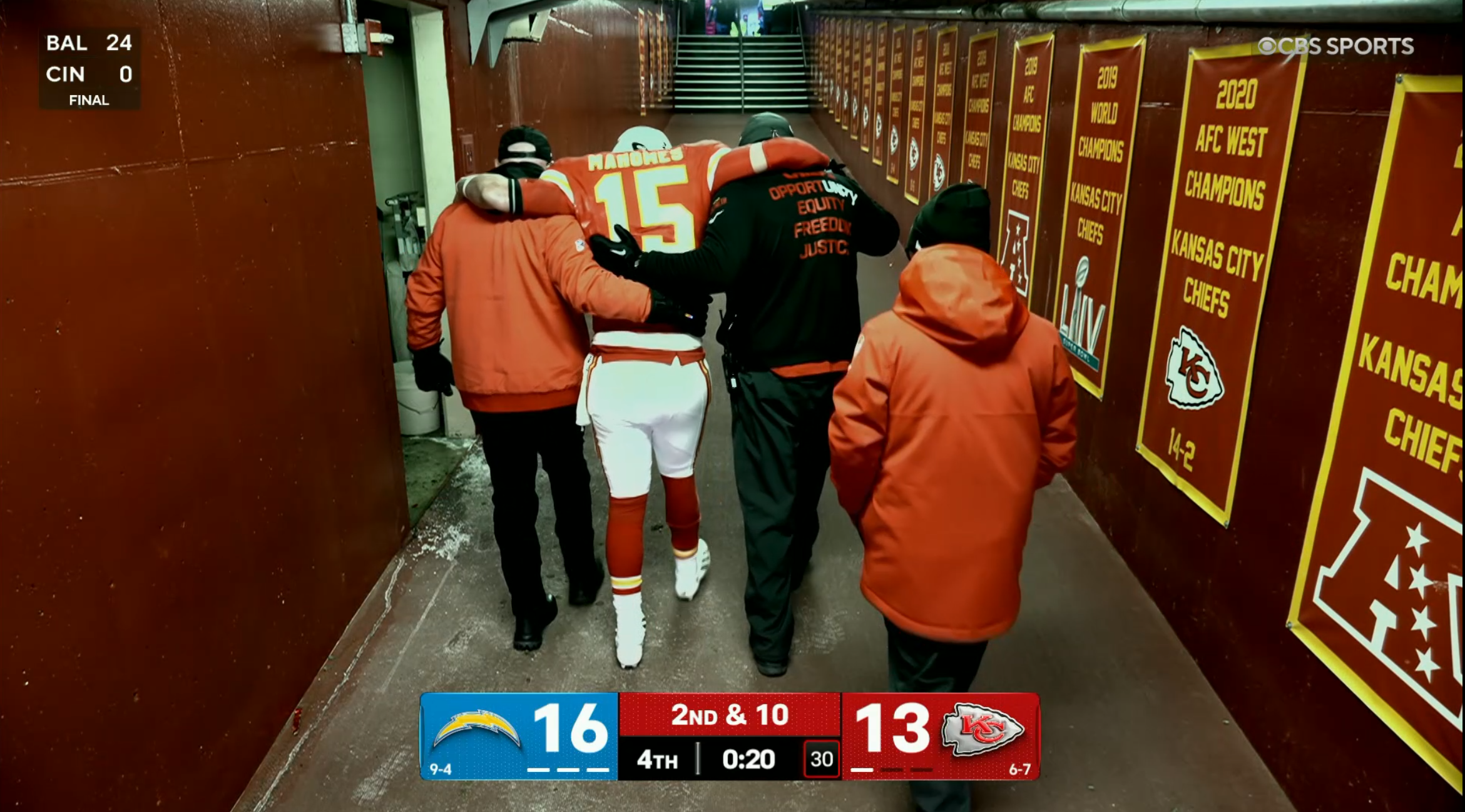 The Kansas City Chiefs have dealt with injuries all day in Week 15 vs. the Los Angeles Chargers, but things just hit disaster levels for the embattled team.