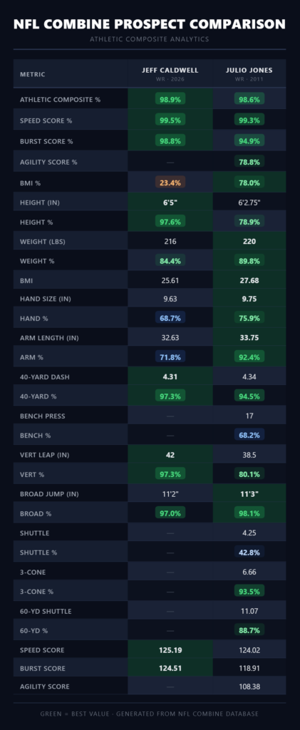 Veach might have someone else in mind, but my guy is Caldwell. The kid absolutely lit up the 2026 NFL Scouting Combine, drawing comparisons to some of the league’s physical and athletic freaks.