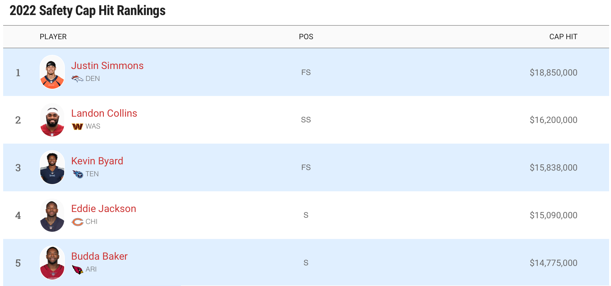 Pro Football Focus is projecting that Mathieu will earn a three-year deal worth $16.25 million per year. That would place the Honey Badger among the top five highest-paid safeties in the NFL (based on annual average value).