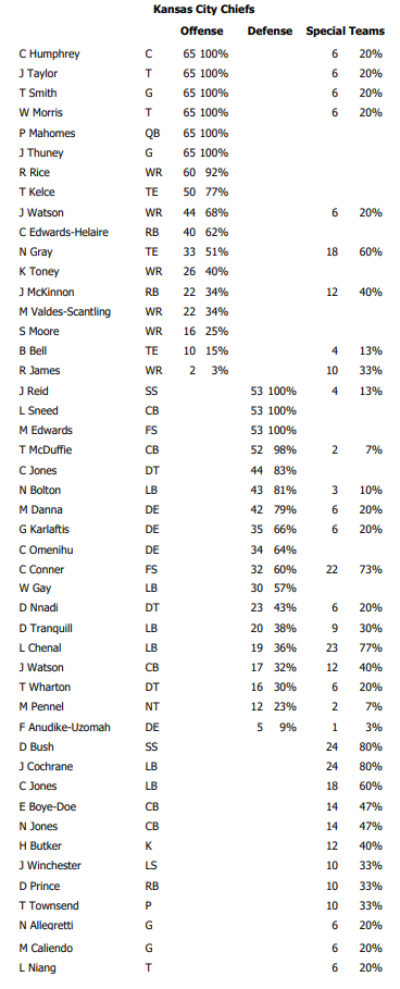 On the other hand, Marquez Valdes-Scantling played just 34% of the offensive snaps and received a single target on the day. That seems to have a lot more to do with his recent struggles and dropped passes. He still has value and is often on the field as a blocker when the Chiefs run to the perimeter or throw quick screens.