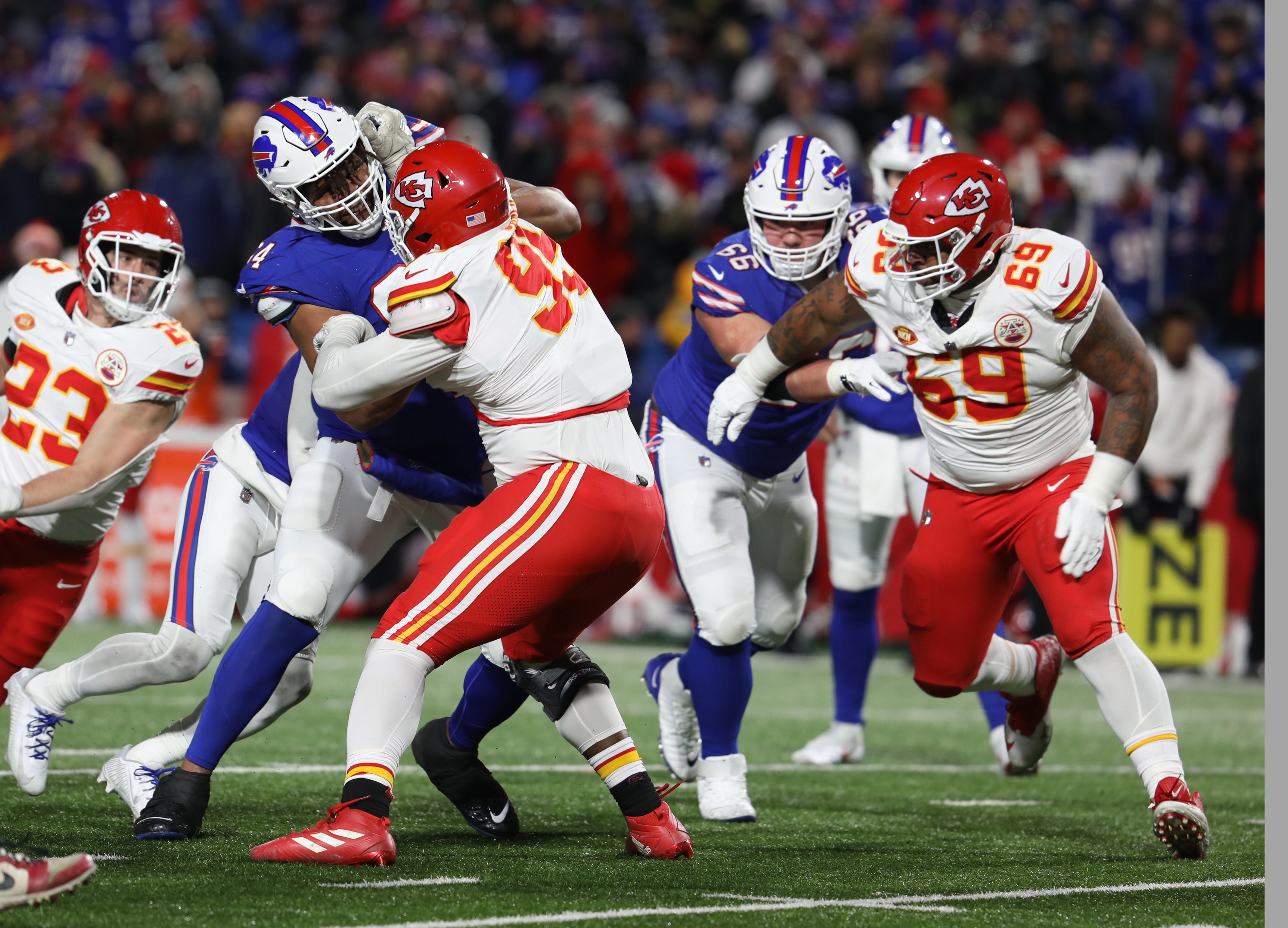 The Chiefs' defense established itself as one of the best units in the league last season. Its veteran defensive line is one of the major reasons for that. K.C. finished second in sacks in 2023 and its run defense stepped up in a big way during the playoffs against four of the best rushing offenses in the NFL.