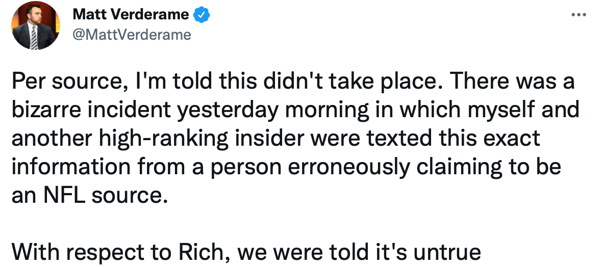 National NFL reporter Matt Verderame reported that the rumor was false as well.
