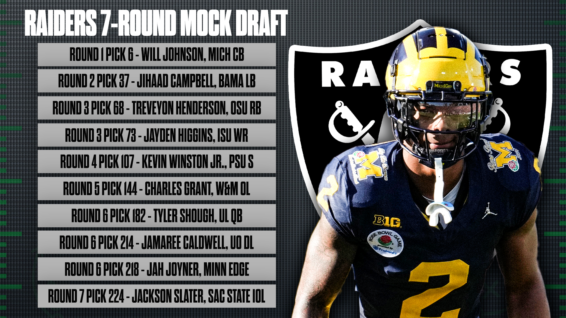Las Vegas Raiders Pre-Combine 7-round Mock Draft: Will Johnsom upgrades the CB room, and big time speed added to the RB position