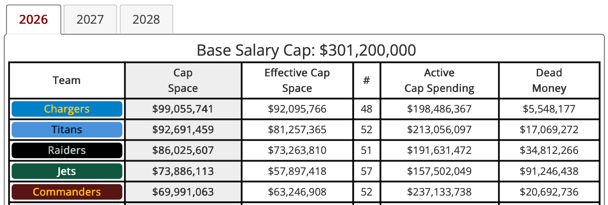 The Chargers already made a big splash, and free agency is still just days away. Although Biadasz’s contract hasn’t been updated on OverTheCap’s calculations, the Chargers have the most salary cap space heading into free agency, and they can be aggressive.