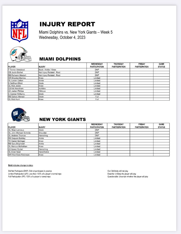 First Miami Dolphins injury update for Week 5 vs. New York Giants