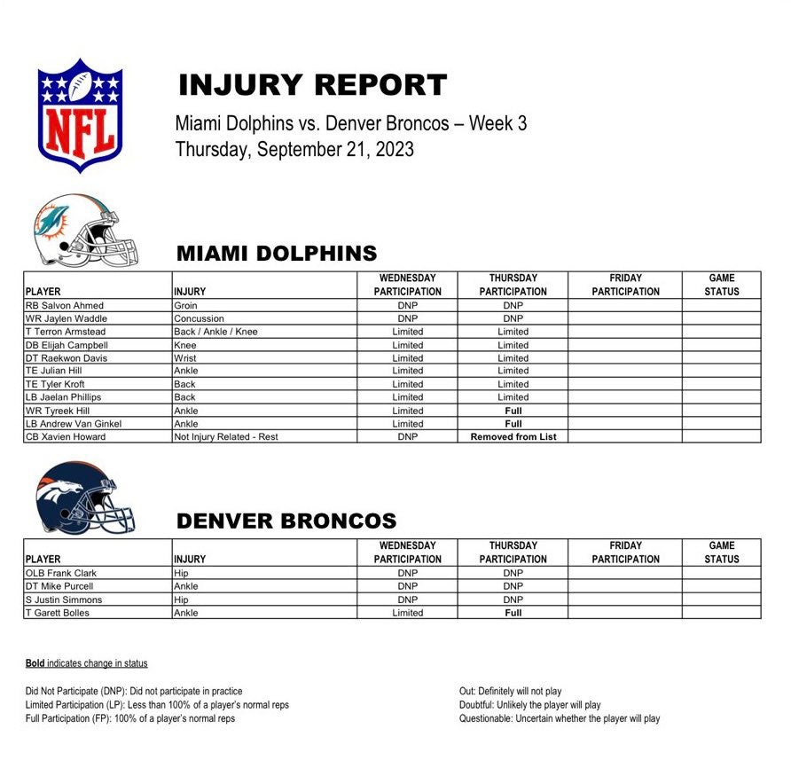 Latest Miami Dolphins injury update for Week 3 vs. Denver Broncos