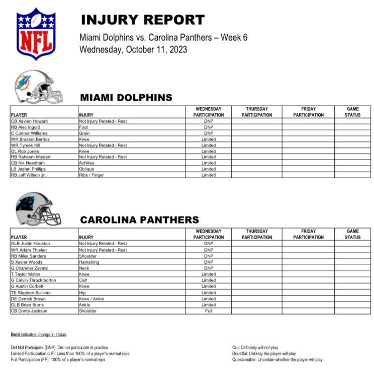 OLB Jaelan Phillips was limited again by his oblique injury. He hasn't logged a full practice since Friday, September 22. A full practice before the end of the week might mean the third-year edge rusher could be ready to return and reclaim his spot, although that will pose any interesting situation for the coaching staff with Andrew Van Ginkel playing so well in his absence.