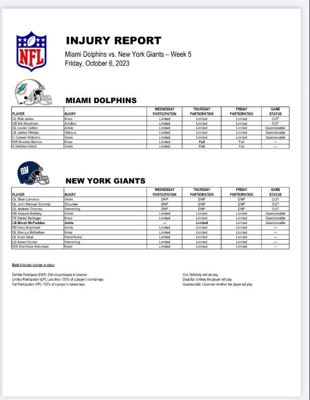 Final Miami Dolphins injury update for Week 5 vs. New York Giants