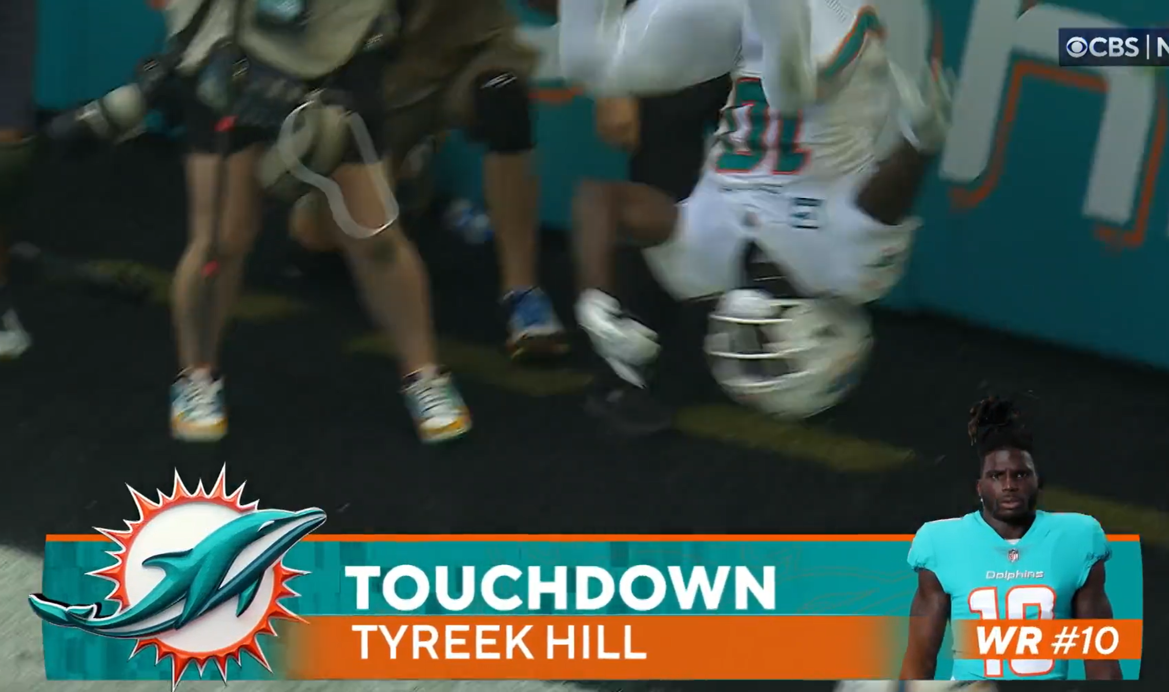 Dolphins’ Tyreek Hill celebrates TD with a cell phone selfie backflip