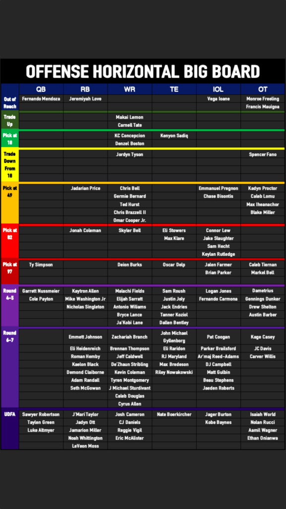 Most people focus on a big board when it comes to the NFL Draft. The better way to look at the draft class as a whole is a horizontal board.