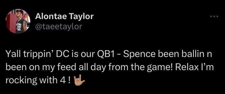 New Orleans Saints nickelback Alontae Taylor sent fans into a frenzy on Monday evening. Taylor tweeted/posted some strong support for rookie quarterback Spencer Rattler on his Twitter/X account.