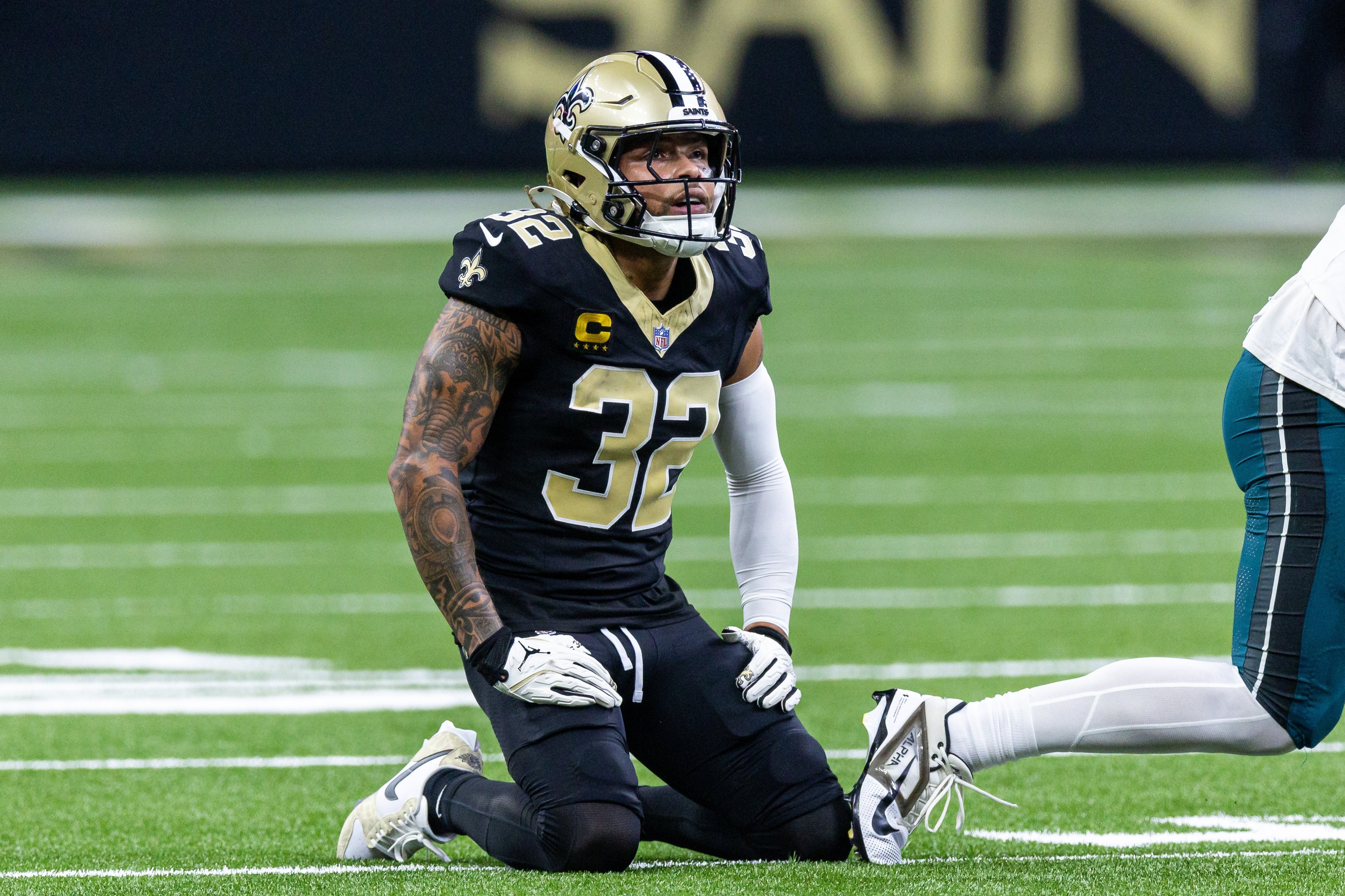Alvin Kamara also had an aggressive stiff arm on a run against Gardner-Johnson earlier in the game.