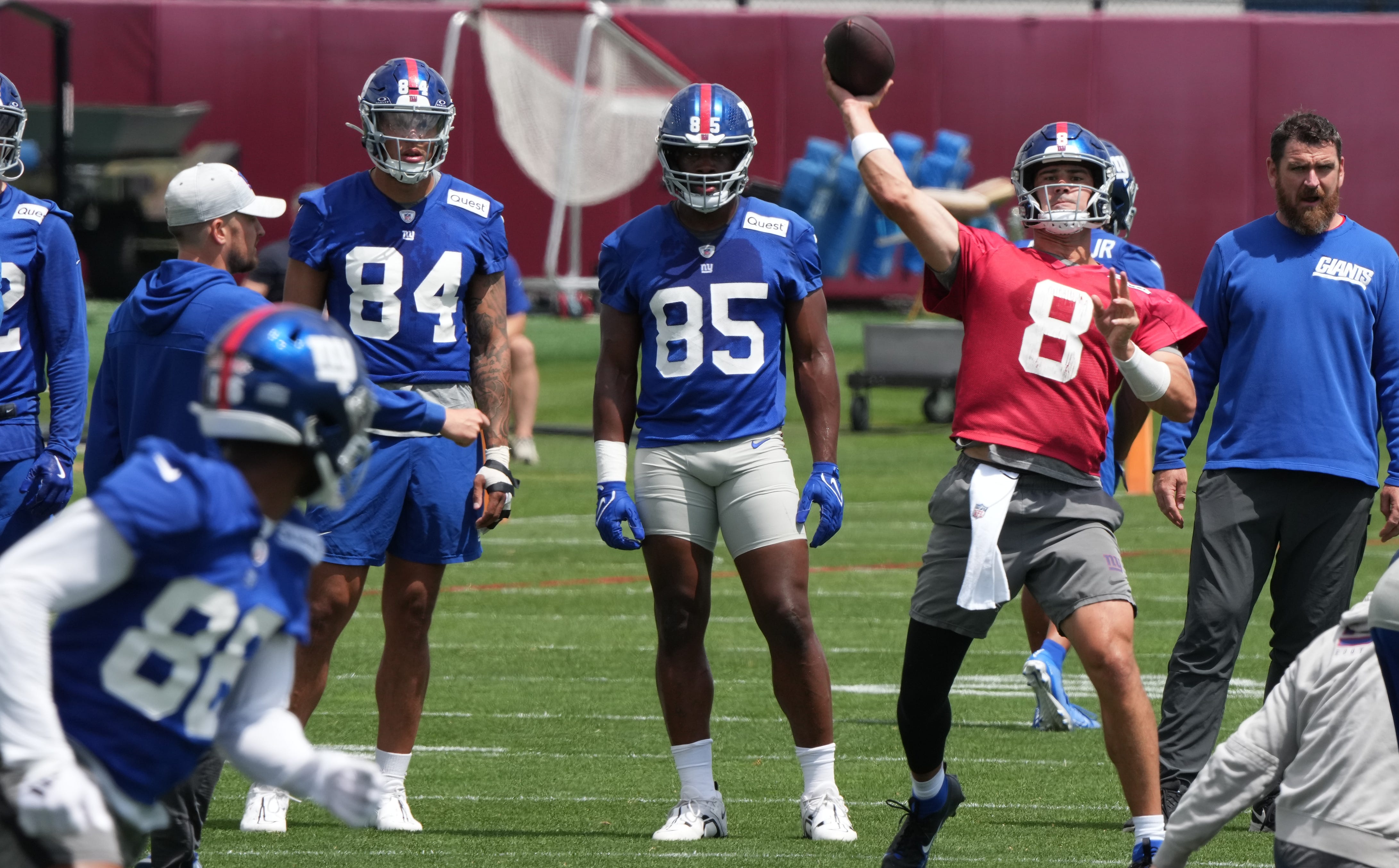 Jones is clearly knocking some rust off as he returns to the field. It's the first practice of camp, so no panic alarms should be pulled yet, due to struggles. That being said, it is worth monitoring that Jones solidifies himself as the Giants' best option for the upcoming season.