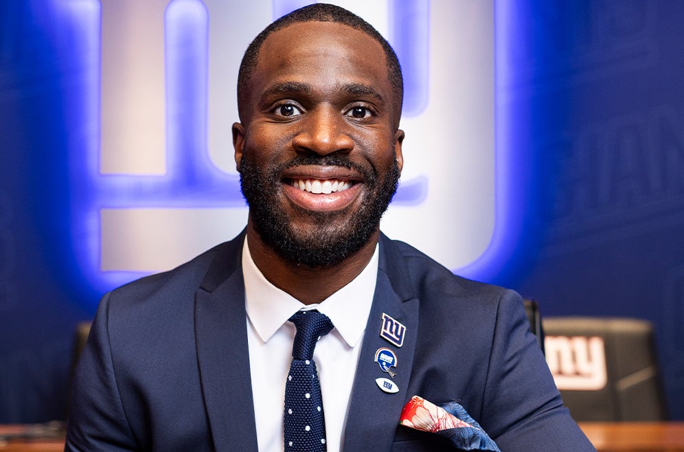 Giants wide receiver Kalil Pimpleton was on the move after receiving a reverse and was looking for a big play. What happened next quickly put an end to that. David Mills fell down while blocking, and Pimpleton proceeded to run right into him and fall down.