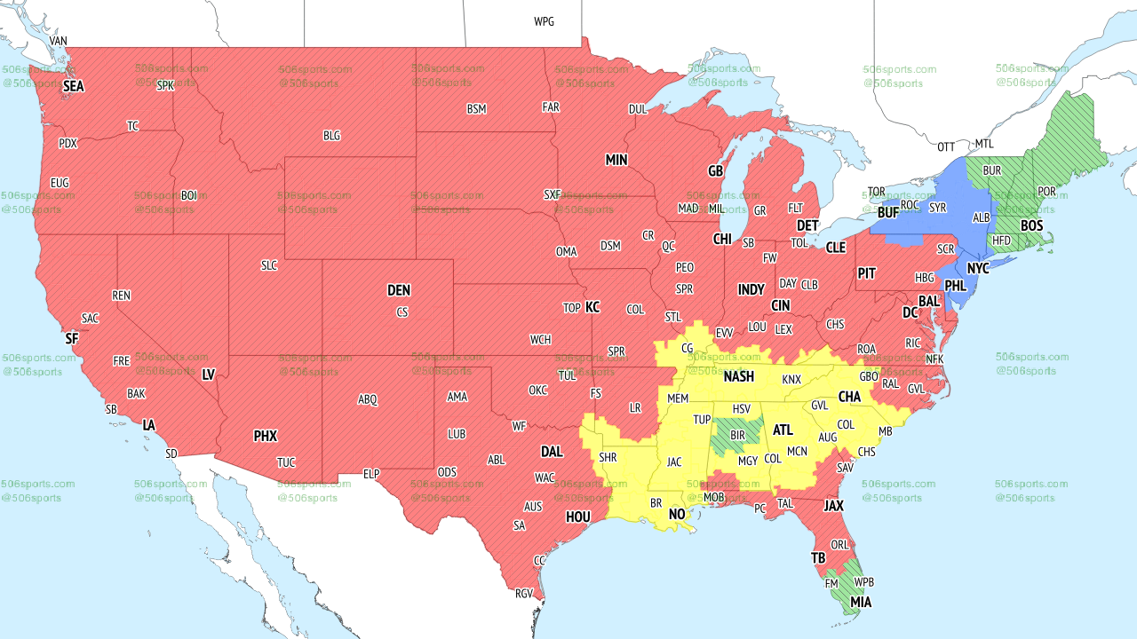Will you be able to watch the game on TV? If you live in the blue areas on the map below you'll get this game on your local CBS channels, according to 506sports.com: