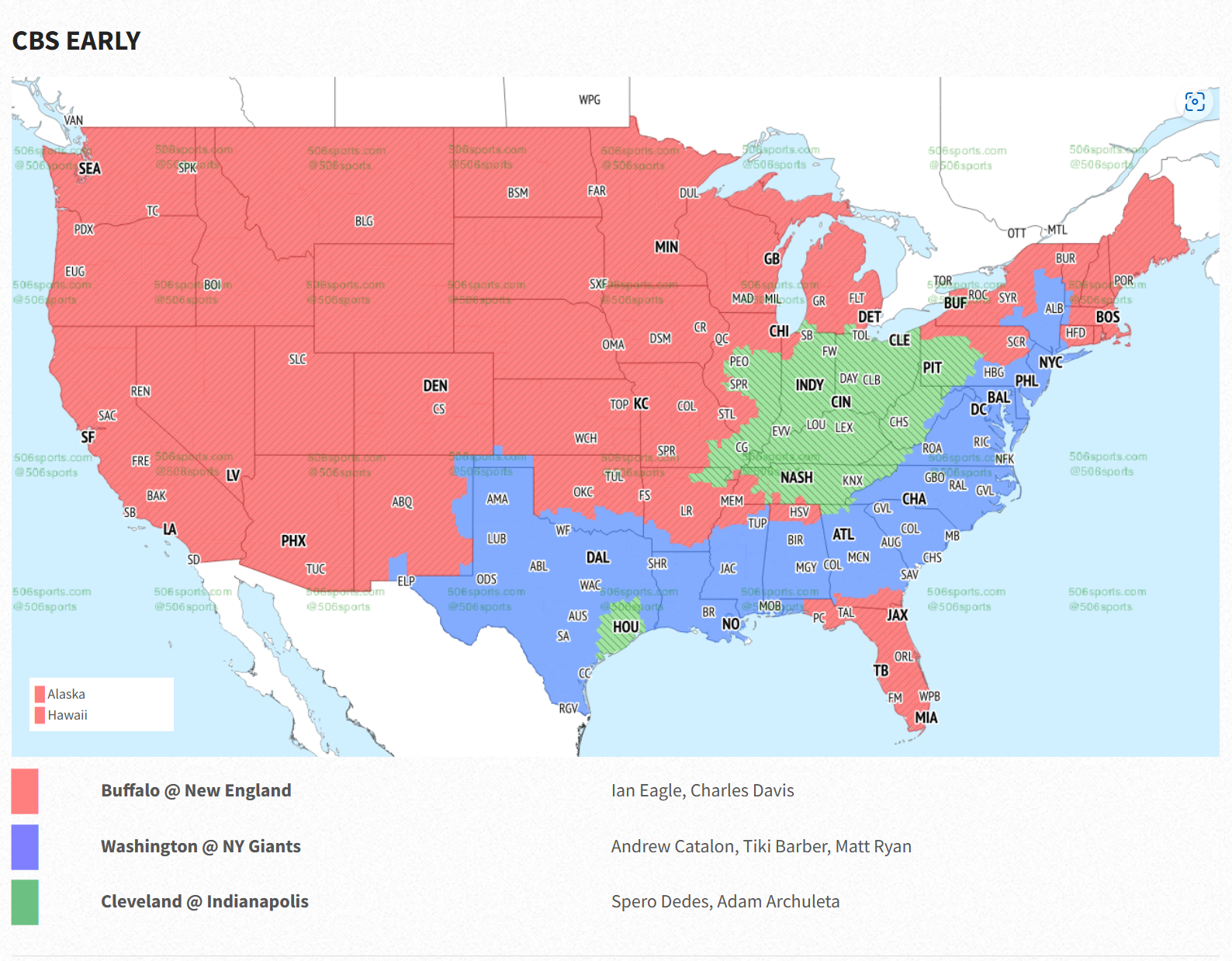 The most noticeable omission is Florida, where fans will get the Buffalo Bills at the New England Patriots as their local game. As such, Giants and Commanders fans that are transplanted in Florida will have to find a sports bar or a friend with the Sunday NFL ticket if they don't have the package themselves.