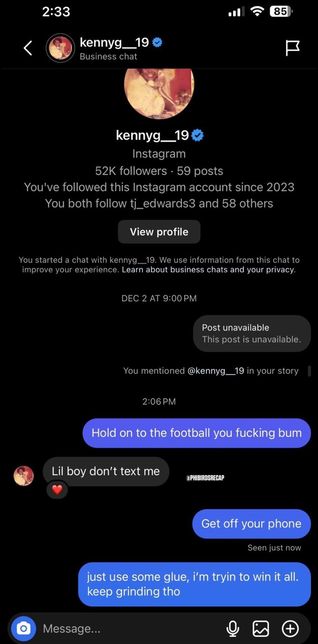 “As far as the report, of course, we talked to Kenny about that,” Sirianni said. “These guys have some time away from us when we get into the locker room, where they sit down at their locker, and they do whatever is going to take their mind and just calm it. Some of this stuff is part of these guys’ lives, so he’s sitting at the locker. Should he respond to somebody that, I don’t even know what if it is called tweeting, texting him, or DMing him? No, he shouldn’t respond to that guy or that girl at all. Of course, we’ve talked to him about that to be locked in and be focused and not worried about outside noise.”