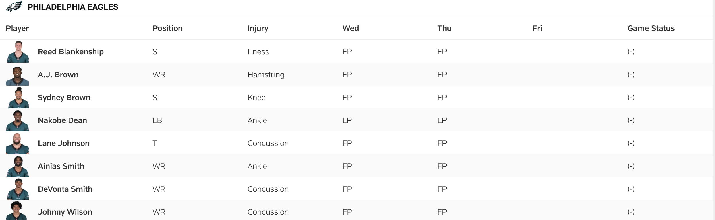 Below is the Eagles' injury report following Thursday's practice: