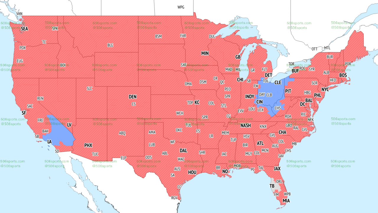 Will you be able to watch this week's game on TV? If you live in the red areas on the map below you’ll get this game on your local FOX channel, according to 506sports.com: