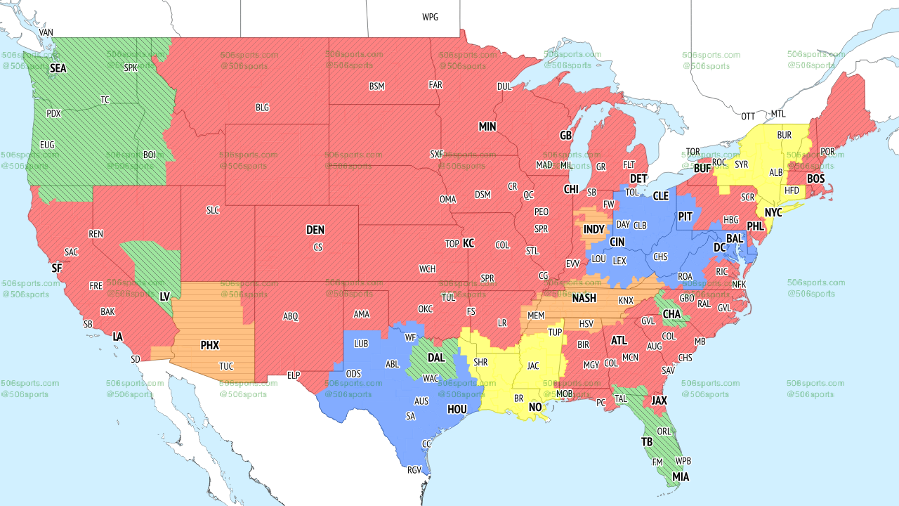 If you’re wondering where and whether or not you will be able to watch the Eagles vs. Broncos Week 5 game, we’ve got you covered. The map below, provided by 506sports.com, shows where the game can be viewed. If you live in the red areas, then you should have no trouble getting the game on your TV.