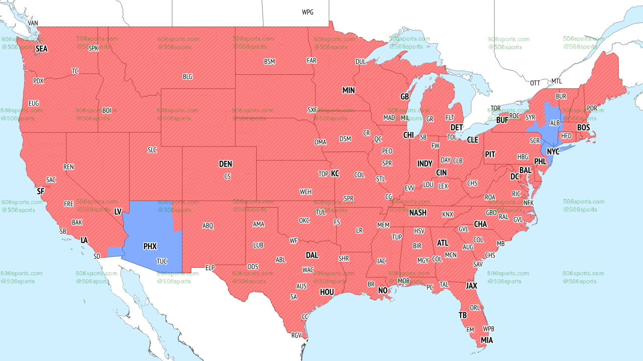 If you're wondering where and whether or not you will be able to watch the Eagles vs. Cowboys Week 10 game, we've got you covered. The map below provided by 506sports.com shows where the game will be able to be viewed.