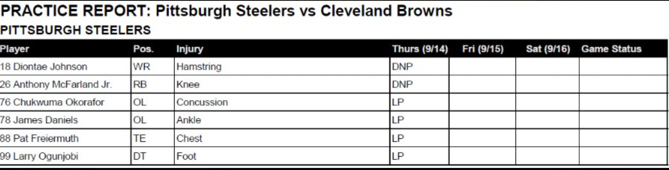 The Pittsburgh Steelers are officially starting preparation for the Cleveland Browns today.
