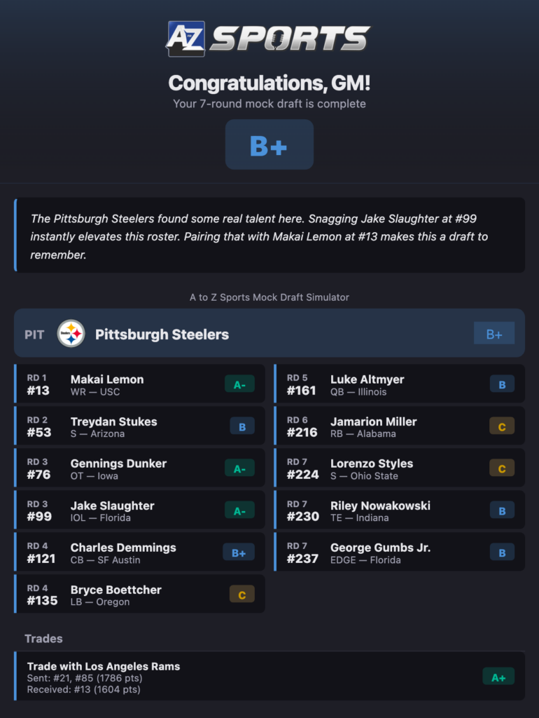 Steelers 7-Round 2026 NFL Draft: Pittsburgh trades up for elite wide receiver before selecting versatile defender on day two