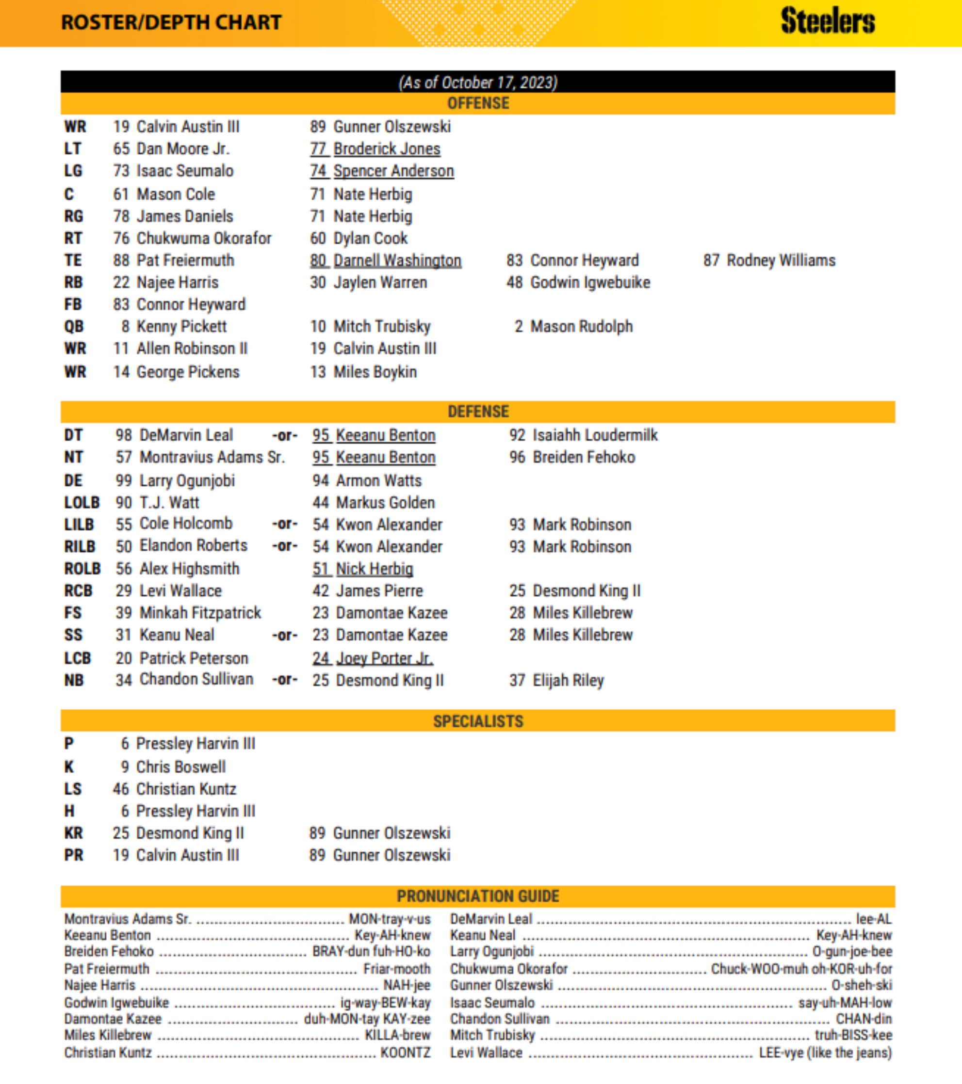 "You can be somewhat pleased with the direction of the play….but the opportunity has to be there," Coach Tomlin told reporters when asked about the likelihood of rookies Broderick Jones and Joey Porter Jr. starting.