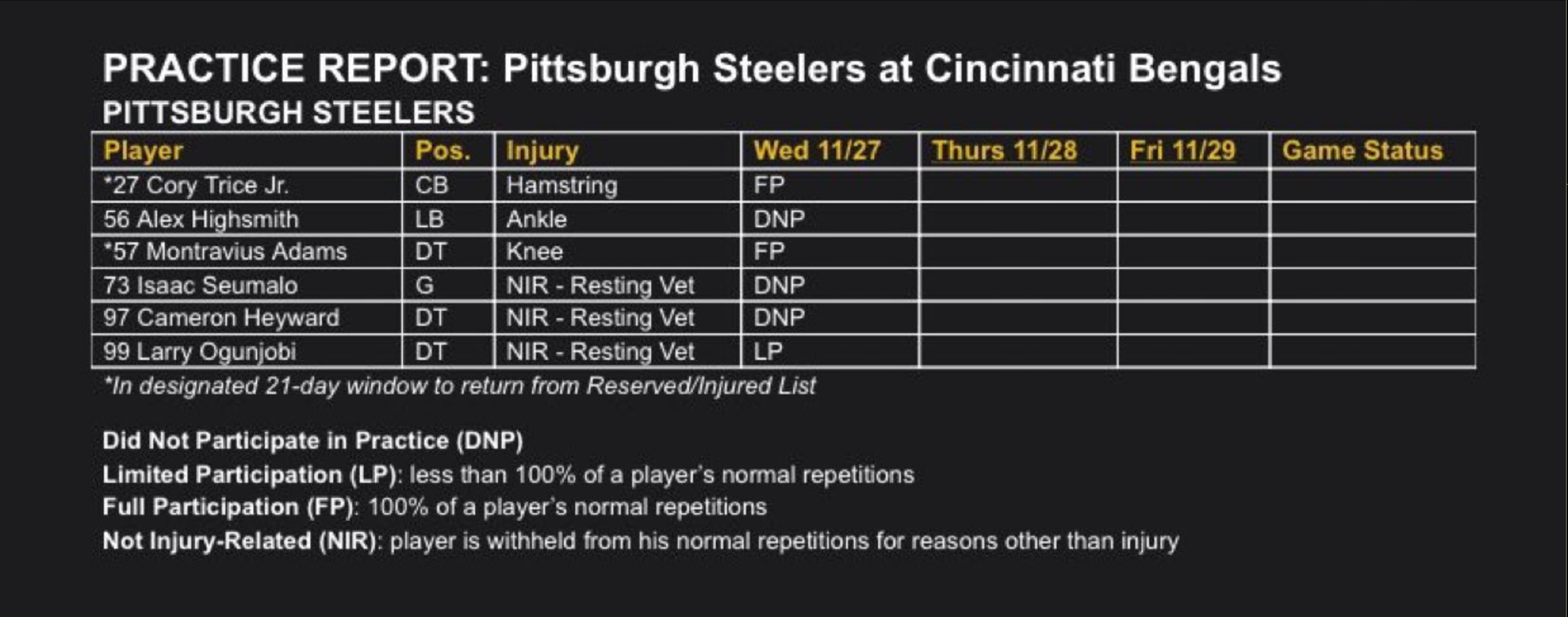 It might be Thanksgiving eve, but it was the start of the work week for the Pittsburgh Steelers on Wednesday.