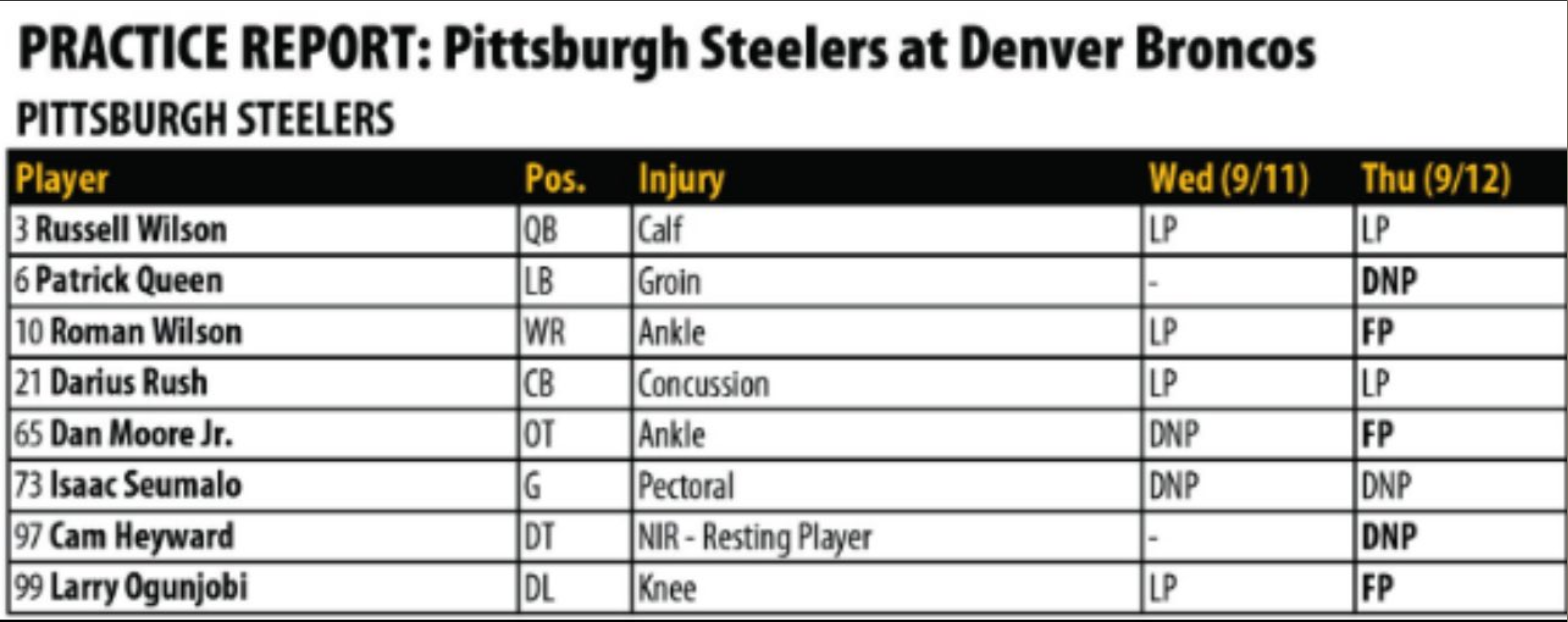 The Pittsburgh Steelers have passed the midpoint of their work week.  With two practices down and one to go before traveling to take on the Denver Broncos, today was always going to be a pivotal day for Russell Wilson if he had any shot at returning to the starting lineup.  Here's what we found out […]