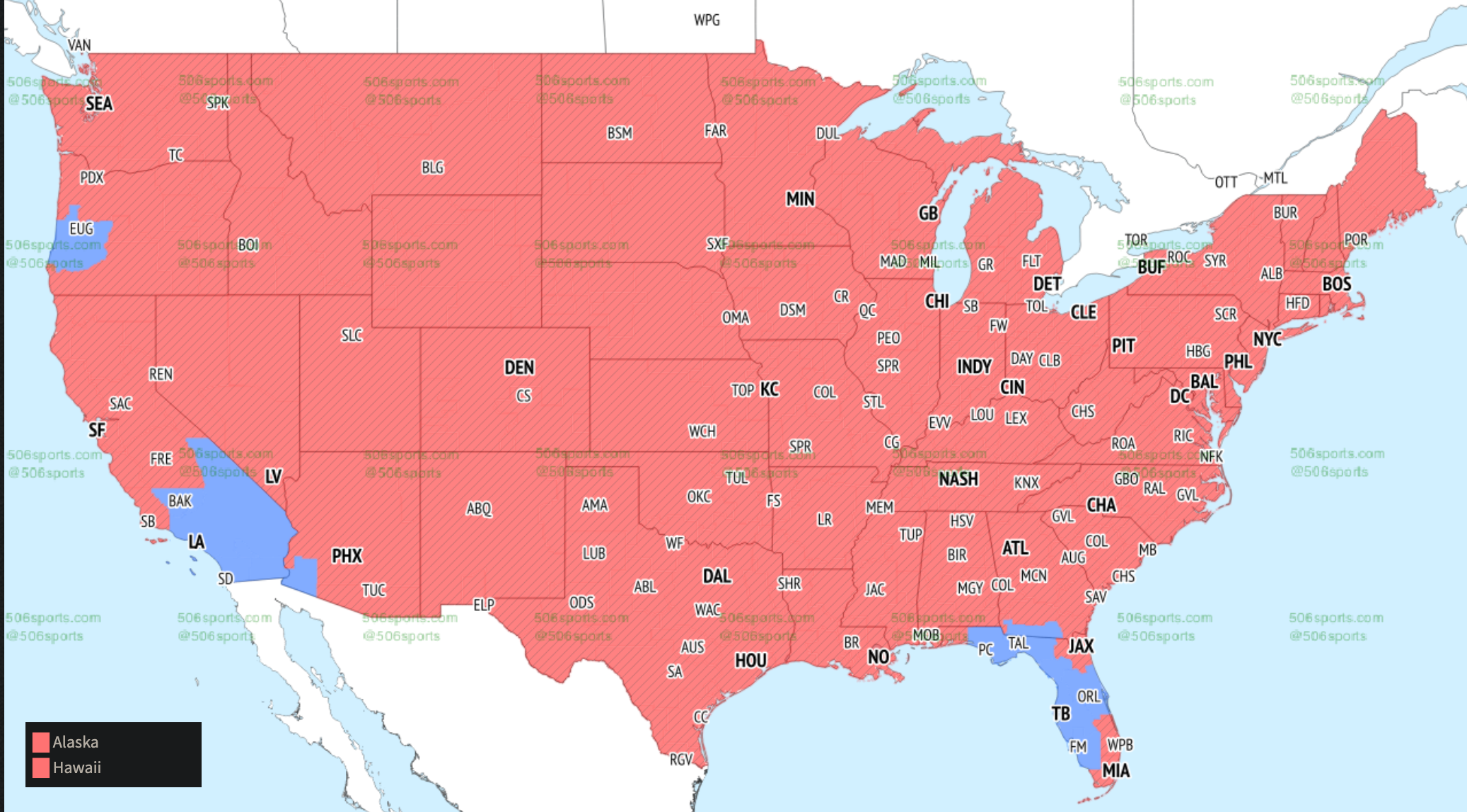 Highlighted in red, the Steelers-Eagles game will be seen by the vast majority of the country in Fox's late afternoon window, with the game slated to kickoff around 4:30 ET.