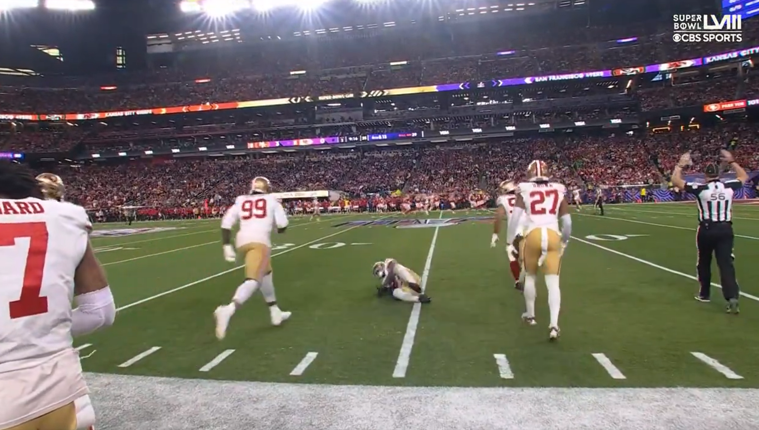 San Francisco 49ers’ Dre Greenlaw suffers a brutal injury in unusual fashion in Super Bowl LVIII