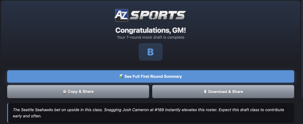 However, the Seahawks were able to dig out of that hole using A to Z Sports’ mock draft simulator. I rolled the dice with a trade back from 32 and as you’ll see, the final result is a very appealing one.